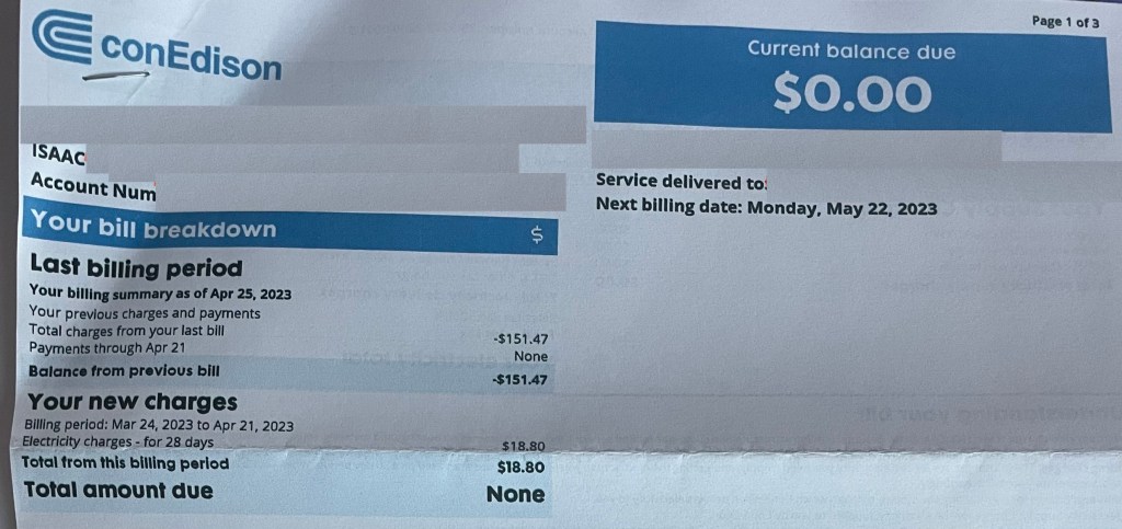 When looking at the financials (as seen on a ConEd bill) here’s what that means: