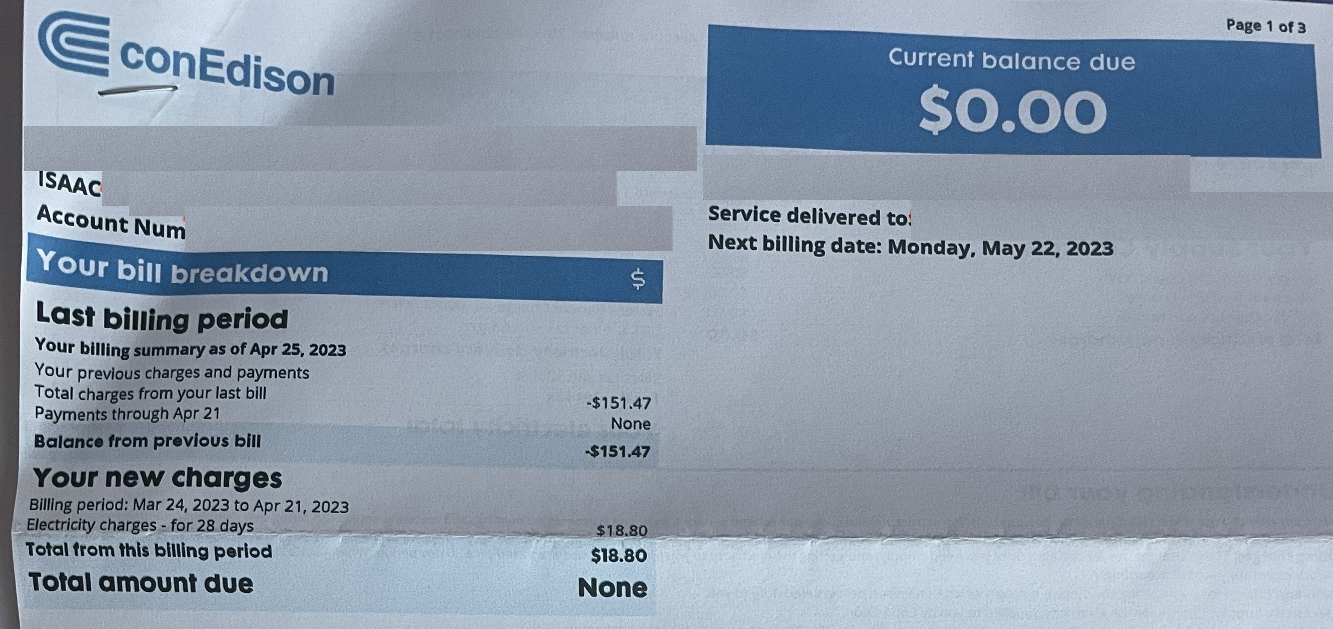 - Beginning in 2023, our subsequent monthly charges have been drawing against that credit, allowing us to only pay the basic service charge along with taxes and fees, all of which goes against that credit (Figure 2)